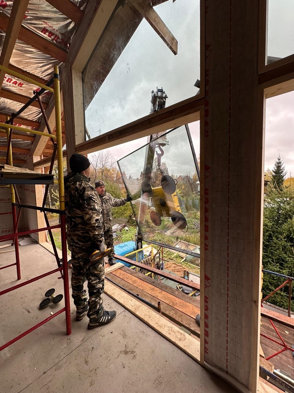 Много разного на стройках повидал, но такое впервые. Манипулятором огромные джамбо стеклопакеты вставляли, непонятной присоской их прицепляли, все так ловко у них получалось, прям какуюто фантастику смотрел. А несколько стеклопакетов ставили изнутри дома, так они умудрились в дом какой то кран "паук" загнать, с собой привезли и в доме поднимали на второй этаж. Сделали на высшем уровне, спасибо огромное. Даже тех огромных денег не жалко стало когда увидел результат. А цену приличную выставили, но и у меня в принципе стекол много в доме, даже 4 джамбо стеклопакета есть. Они очень дорогие в изготовлении и установке, ну покрайней мере для меня. Спасибо, жму руку.